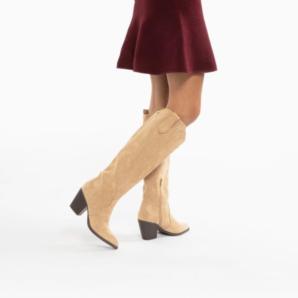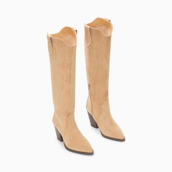 Femme Vanessa Wu Bottes, Cuissardes | Bottes Santiags Sharon Beiges à Talon