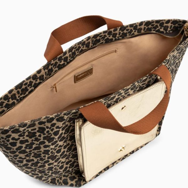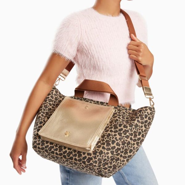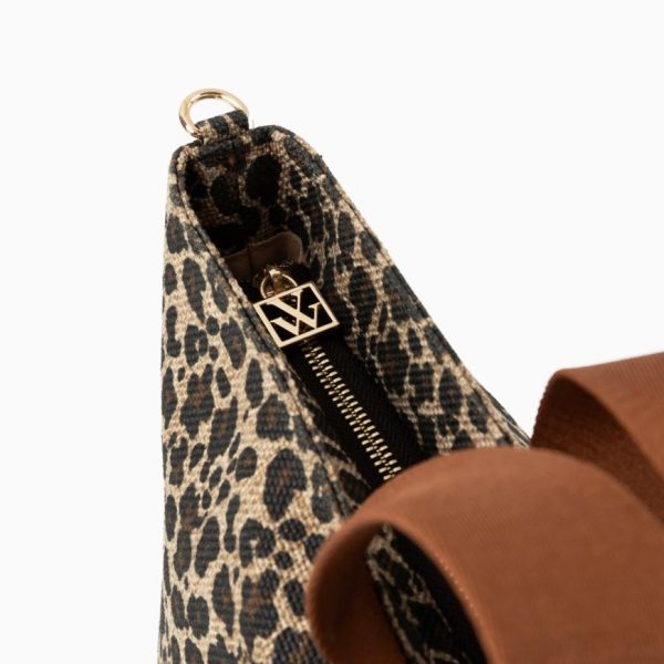 – Bandoulière amovible réglable en tissu marron, à boucles et mousquetons argentés