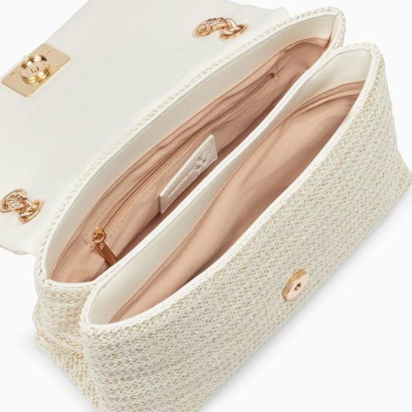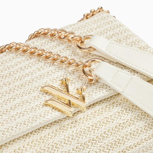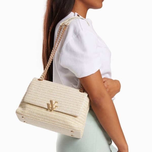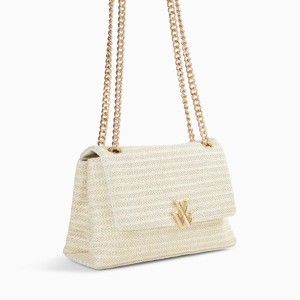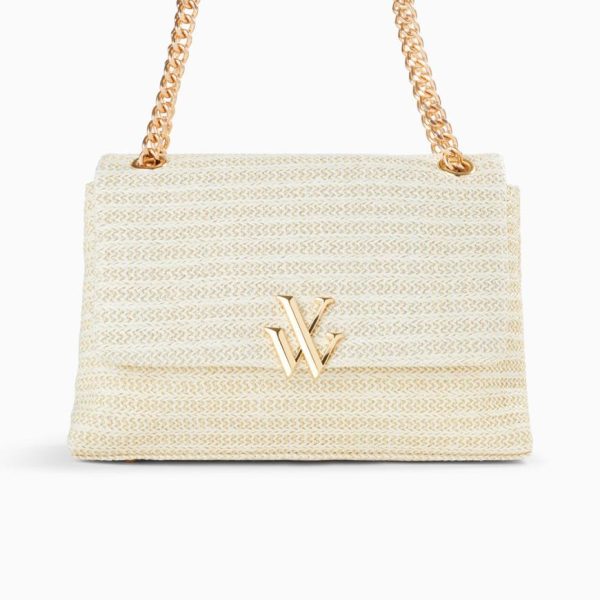 – Bandoulière large amovible et réglable, en tissu à imprimé vache ivoire et or