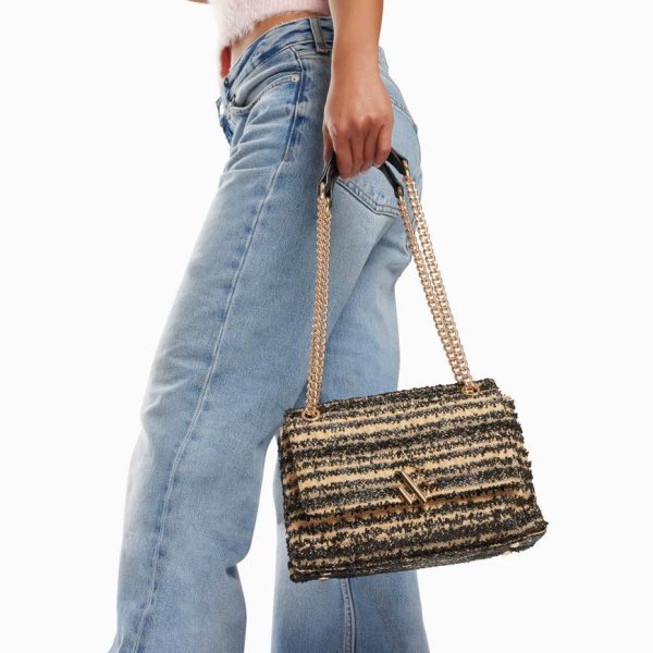 Femme Vanessa Wu Sacs | Sac à Main Naomi Noir Et Beige à Chaîne