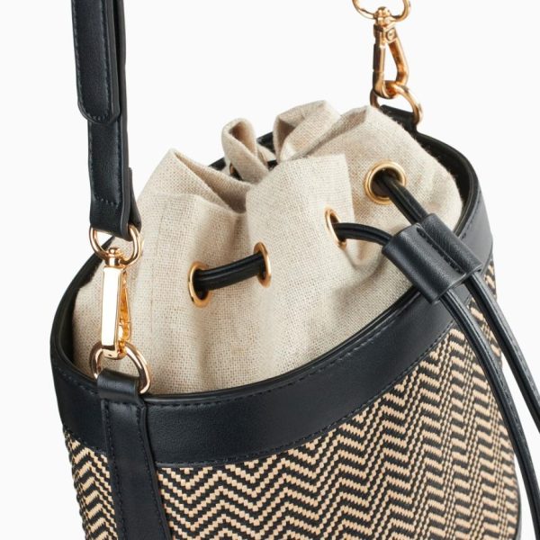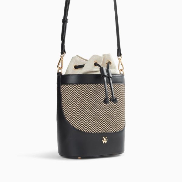 Femme Vanessa Wu Sacs | Sac Seau Maryline Noir En Raphia Tressé
