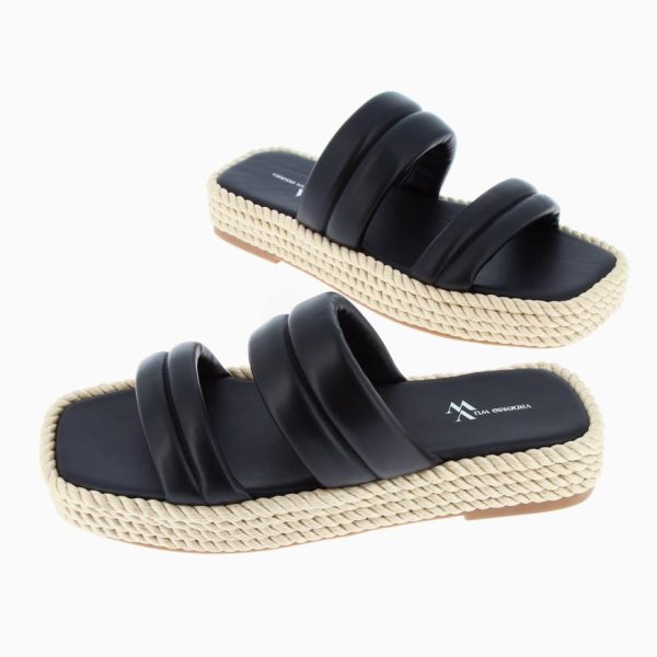 Femme Vanessa Wu Sandales Plates | Mules Nala Noires à Plateforme Cordes