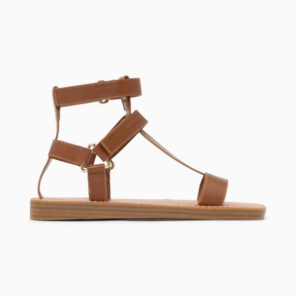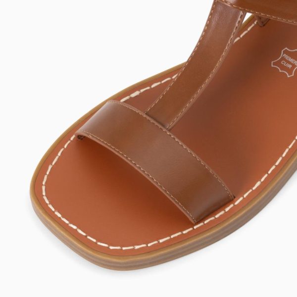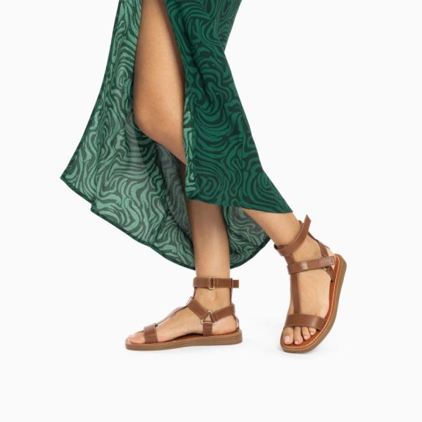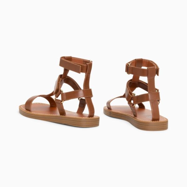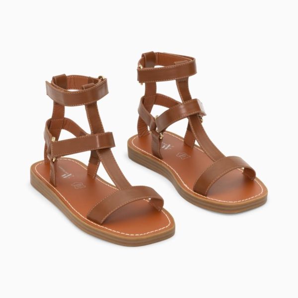 – Sandales plates type spartiates en suédine beige